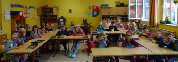 Nach einem langen Applaus durften sich dann sowohl die Schauspieler und Schauspielerinnen als auch die Gäste mit den von Klasse 1 und 2 gebackenen Keksen sowie Tee, Kaffee und Kinderpunsch stärken und den Nachmittag gemütlich ausklingen lassen.