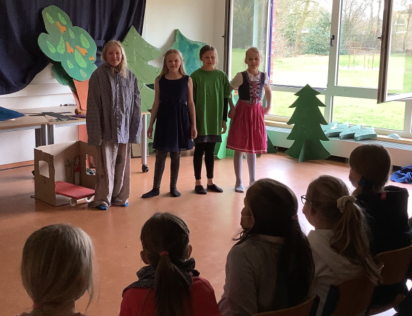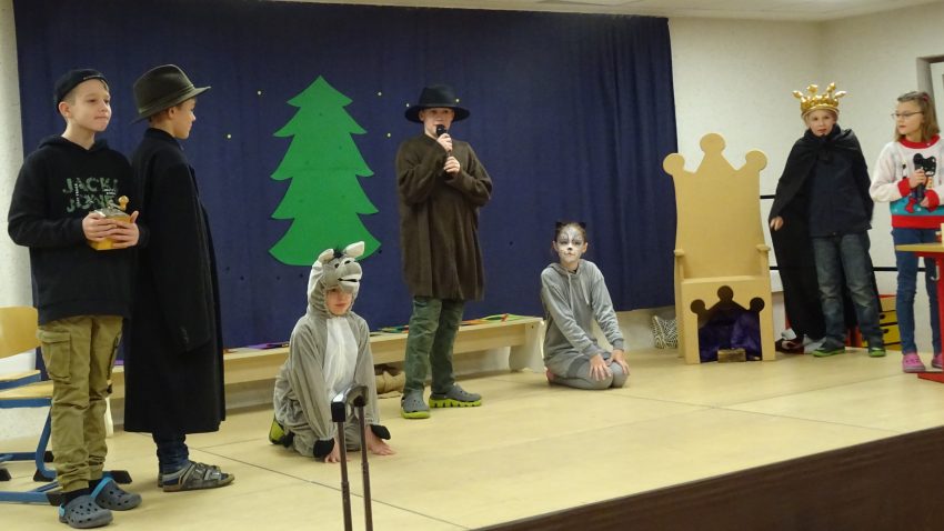 In der kleinen Eröffnungsfeier präsentierten die Zweitklässler das Märchen Die Bremer Stadtmusikanten . Petra Muhle, unsere pädagogische Mitarbeiterin, hatte das Stück vor den Ferien über mehrere Wochen in den Betreuungsstunden mit den Kindern einstudiert. Das bekannte Märchen der Gebrüder Grimm sorgte für viel Begeisterung bei allen Anwesenden und alle waren sich einig, das was SPITZE!