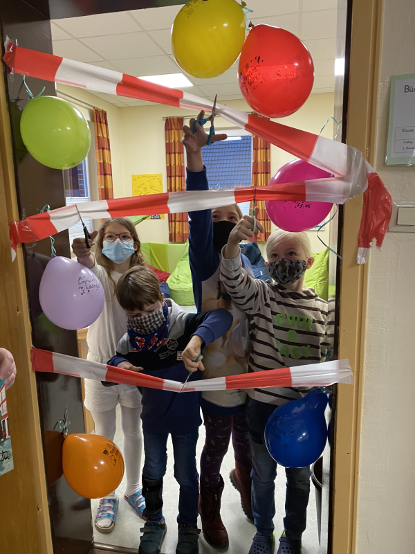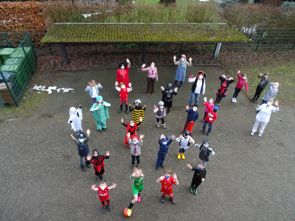 Eine gemeinsame Feier mit allen Schülerinnen und Schülern in der Aula war leider auch in diesem Jahr aufgrund der Corona-Situation nicht möglich. Stattdessen hat jede Klasse ihre eigene kleine Karnevalsfeier im Klassenraum gefeiert. Hierzu wurden bereits im Vorfeld Dekorationen gebastelt und die ganze Schule – dank der großen Unterstützung von Petra Muhle – farbenfroh geschmückt.