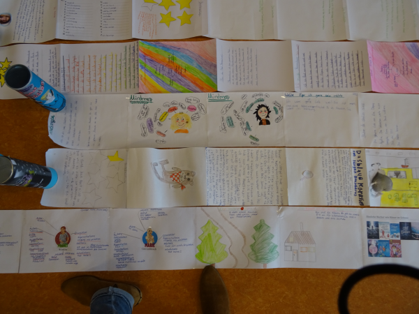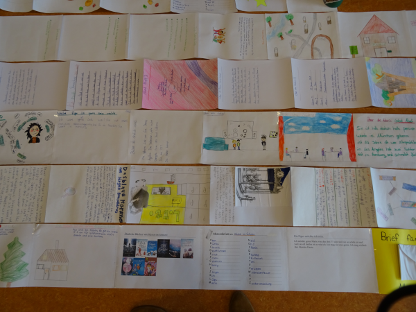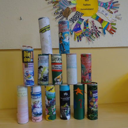 Über mehrere Wochen hinweg bearbeiteten die Viertklässler zu einem selbst ausgewählten Buch verbindliche sowie selbst ausgewählte Aufgaben. Gespannt waren alle Schülerinnen und Schüler auf die Präsentationen der Leserolle. Jedes Kind rollte die Rolle und die Arbeit war „in voller Länge“ sichtbar. Anerkennendes Staunen war zu hören und zu sehen.
