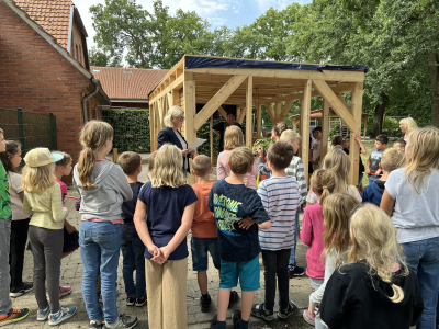 Heute war es soweit – wir konnten das Richtfest unserer neuen Spielhütte feiern. Nach dem Aufhängen der Richtkrone und einem Richtspruch durfte auch der Richtschmaus nicht fehlen. So gab es für alle Schülerinnen und Schüler ein Eis.
