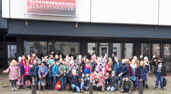 Unsere Schule unternahm am Dienstag, den 10.12.2024 einen weihnachtlichen Ausflug zum Staatstheater nach Oldenburg. Schon die Fahrt dorthin war ein Highlight, denn vor der Schule stand ein großer Doppeldeckerbus, in den alle hineinpassten. In Oldenburg angekommen ging es nach einer kleinen Stärkung auch schon los mit dem Stück „Momo“.