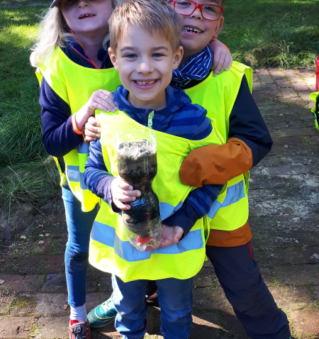 Die Veranstaltung ist Teil unseres pädagogischen Konzepts, das Umweltbildung, nachhaltiges Handeln und das Interesse am Lesen fördert. Im Anschluss hatten die Kinder die Möglichkeit, Fragen zu stellen und mit der Autorin ins Gespräch zu kommen. „Die Geschichten drehen sich um den Klimaschutz, die daraus folgenden Probleme und dienen zur Aufklärung der Kinder“, erzählt Jenta die dahinterstehende Motivation. Nicht nur in ihren Büchern thematisiert sie die durch Plastik entstehende Umweltbelastung, sondern auch privat liegt ihr die Thematik sehr am Herzen. „Ich kaufe nur in unserem Huder Biomarkt ein und achte sehr stark darauf, Plastik möglichst zu vermeiden“, berichtet Jenta.