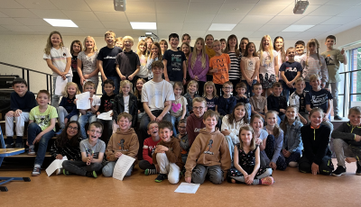 Ein großes Lob an alle Spielerinnen und Spieler für ihren Einsatz, den fairen Umgang miteinander und die tolle Stimmung auf und neben dem Platz. Der zweite Platz ist ein großartiger Erfolg. Herzlichen Glückwunsch an unsere Fußballerinnen und Fußballer – wir sind stolz auf euch. Die Freude über die gute Platzierung unserer Teams zeigten auch die Mitschülerinnen und Mitschüler, die in der Schule geblieben sind, indem sie die Fußballerinnen und Fußballer mit einem Spalier und viel Applaus in der Schule begrüßten.