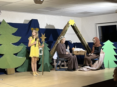 Unsere diesjährige Weihnachtsfeier fand am Dienstag, den 17.12.2024 statt. Um 17.00 Uhr versammelten sich Schüler und Schülerinnen, Lehrer, Eltern, Omas und Opas sowie weitere Gäste im weihnachtlich geschmückten Betreuungsraum der Peter-Lehmann-Schule, um gemeinsam einen schönen Nachmittag zu verbringen. Nach einer Begrüßung durch Frau Sander wurde das Mikrofon in die Hände der Kinder weitergegeben, die das Publikum mit dem Theaterstück „Weihnachten und das etwas andere Krippenspiel“ begeisterten. In dem Stück möchten ein paar kluge sowie ein paar rechthaberische Engel den anderen Engeln erklären, warum wir Weihnachten feiern. Dass die „echte“ Weihnachtsgeschichte nicht die von „Rudolf dem Rentier“ ist und es an Weihnachten nicht um die Geschenke geht, stellen sie dabei schnell heraus. Aber was hat Weihnachten mit dieser schwangeren Frau zu tun? Wer ist dieser Jesus und was hat es mit der Wirtin auf sich, die einfach nur ihre Ruhe haben möchte? Ob der hungrige König sein drittes Abendessen erhält und ob es den müden Hirten gelingt, wach zu bleiben? All diese Fragen wurden mit einem beeindruckenden schauspielerischem Talent von unseren jungen Akteuren beantwortet. Die gemeinsam gesungenen Lieder, die vorab von allen Schülerinnen und Schülern beim Adventssingen am Brunnen geübt wurden, rahmten das Stück musikalisch ein.