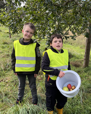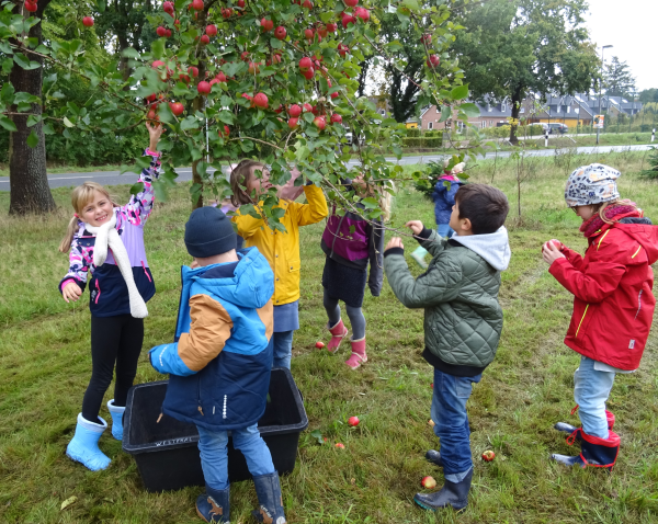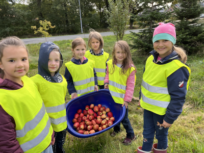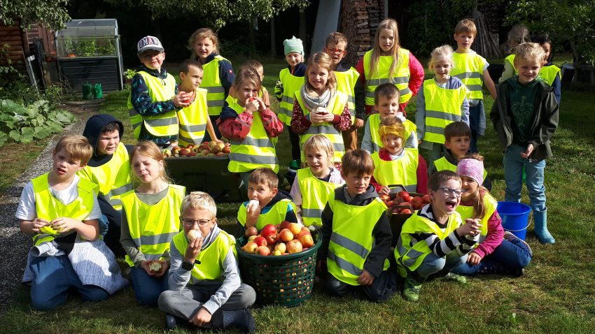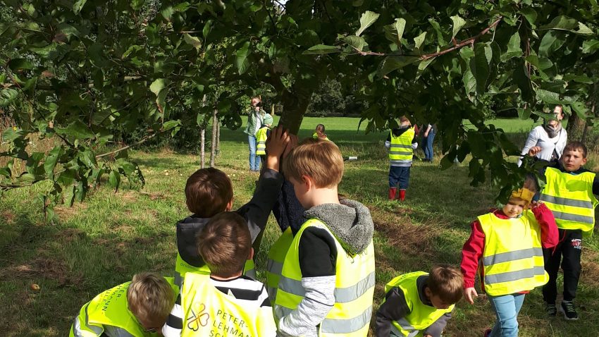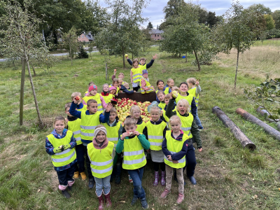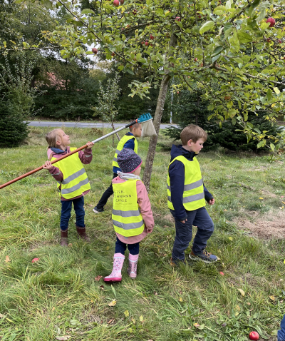 In der letzten Woche vor den Herbstferien waren die Kinder der Klassen 1 und 2 wieder auf der Apfelwiese von Familie Westphal anzutreffen, denn dort sammelten sie eifrig Äpfel für Ollis mobile Saftpresse. Herzlichen Dank an dieser Stelle an Familie Westphal, die wieder einmal ihre Apfelbäume und das Material zum Pflücken und Sammeln bereitstellten.