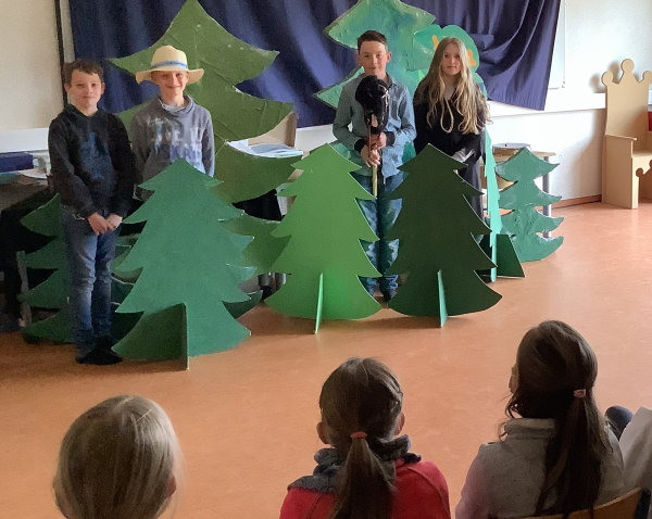 In der kleinen Eröffnungsfeier präsentierten die Zweitklässler das Märchen Die Bremer Stadtmusikanten . Petra Muhle, unsere pädagogische Mitarbeiterin, hatte das Stück vor den Ferien über mehrere Wochen in den Betreuungsstunden mit den Kindern einstudiert. Das bekannte Märchen der Gebrüder Grimm sorgte für viel Begeisterung bei allen Anwesenden und alle waren sich einig, das was SPITZE!