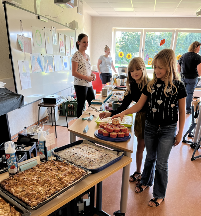 Im Anschluss gingen die Erstklässler gut gelaunt mit ihrer Klassenlehrerin Frau Höffmann in ihren Klassenraum und hatten ihre erste Unterrichtsstunde, während die Familien das strahlende Wetter bei Kaffee und Tee genossen.