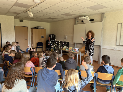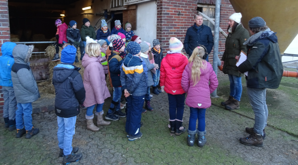 Möglich wurde die Veranstaltung Dank des Landkreises Oldenburg. Der Vertreter Claas Schöbel, Fachstelle Klimaschutz, Klimaanpassung und Nachhaltigkeit, verteilte im Anschluss an die Lesung an alle teilnehmenden Kinder unserer Schule das Buch „Ist unser Wald in Gefahr?“.
