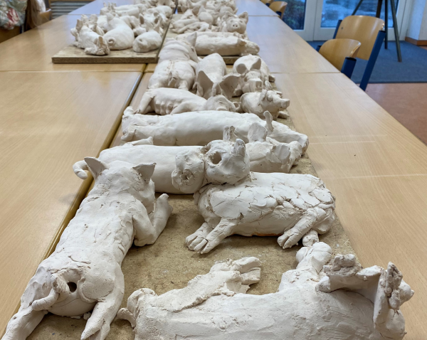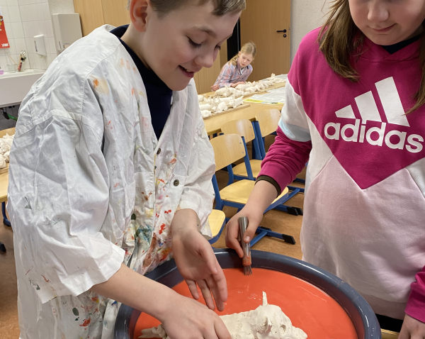 Passend zu Ostern haben die Kinder der Klassen 3 und 4 in der letzten Woche vor den Osterferien Hühner aus Pappmaschee gebastelt.