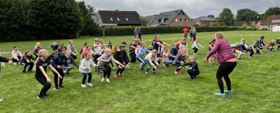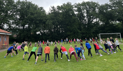 Bevor es an die einzelnen Stationen ging, gab es unter der Anleitung von Frau Spichartz-Grübbel ein tolles Aufwärmprogramm zu fetziger Musik.