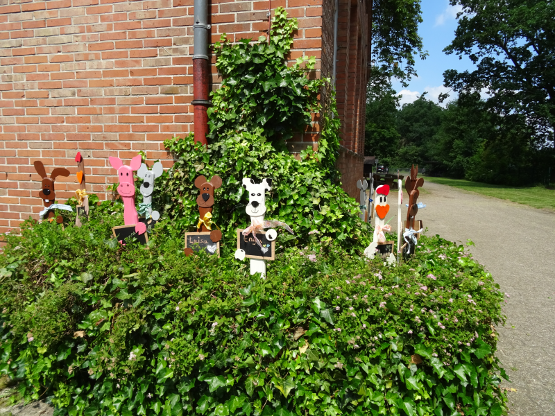 In den letzten Wochen war bei uns tierisch was los. Die Schülerinnen und Schüler der 4. Klasse haben im Rahmen eines Werkprojektes mit tatkräftiger Unterstützung von Kerstin Seeger, pädagogische Mitarbeiterin, gesägt, geschliffen, gemalt, geklebt und geölt. Herausgekommen sind Tiere aus Holz, über Huhn, Kuh bis hin zur Maus schmücken die Aufsteller jetzt das Beet an unserer Grundschule – ein echter Hingucker.